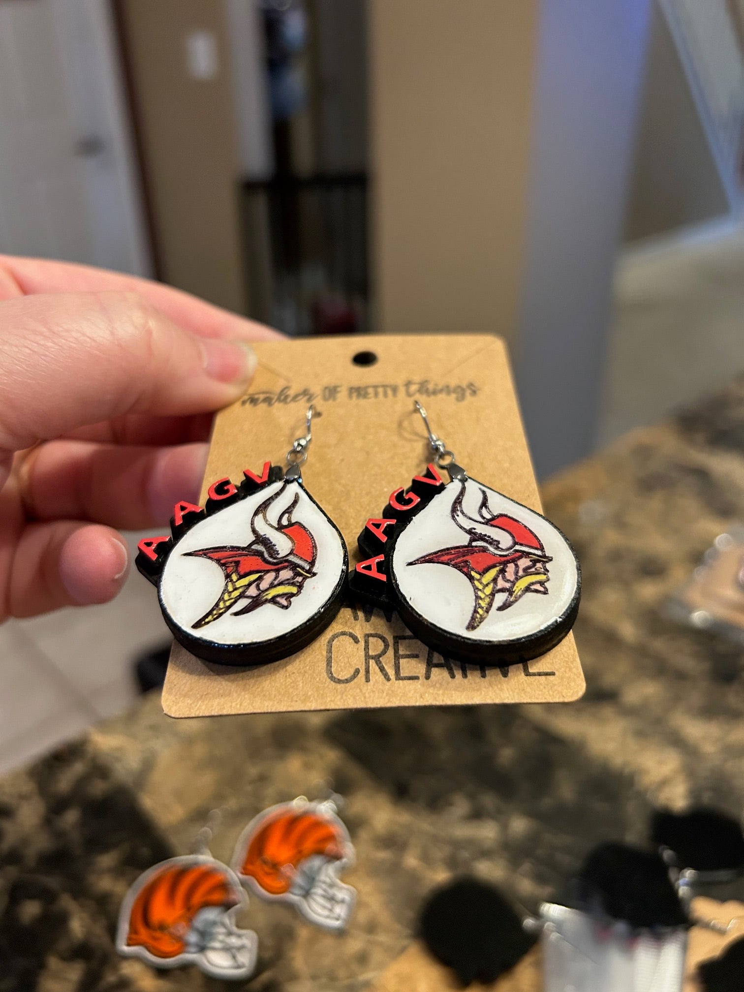 Examples of custom earrings. Minimum $10.00 per set. Contact the store for details and confirming design and quantity.